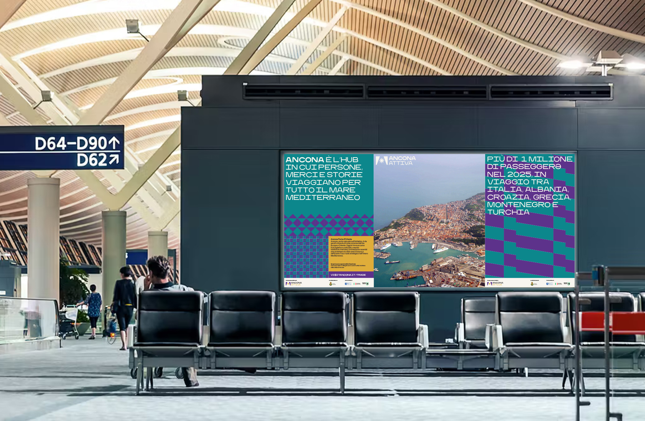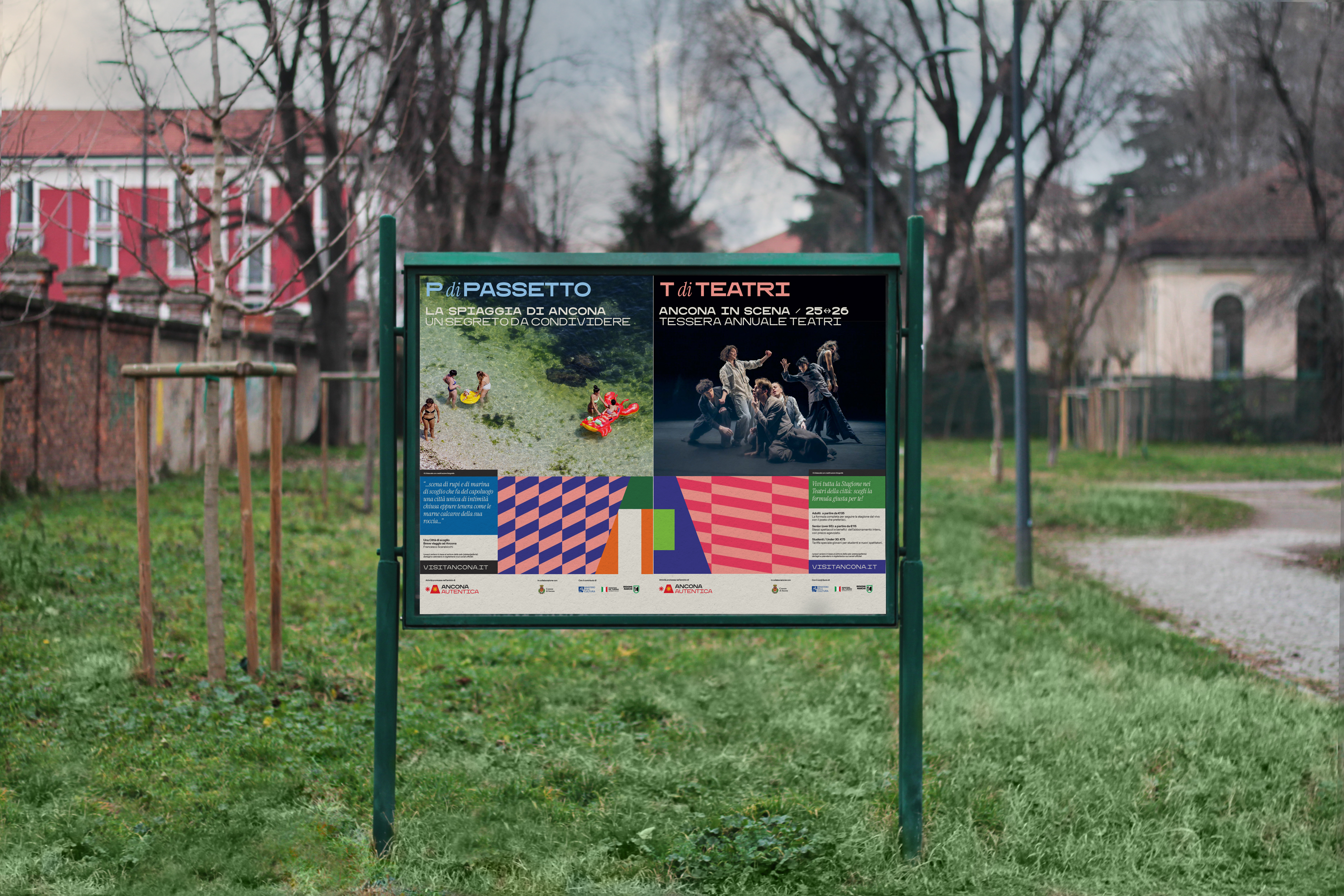 It highlights what happens across Ancona’s different areas, inviting people to rediscover the city from within. At the center remain meaningful words, emphasized by their initial letter: A di Ancona is followed by T di Teatri for seasonal theaters promotion, R di Rispetto for awareness campaigns, P di Passetto, and many other possible variations.