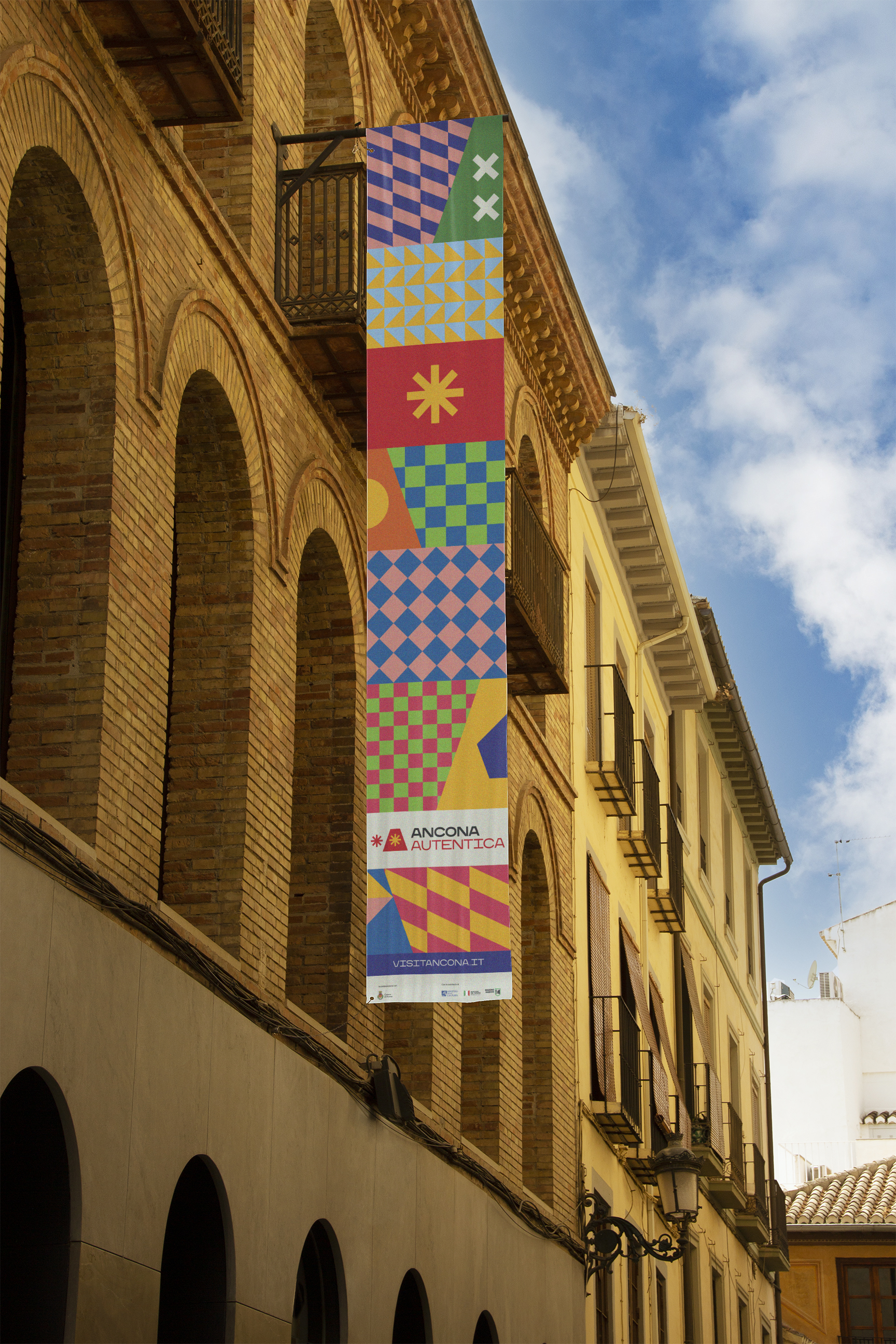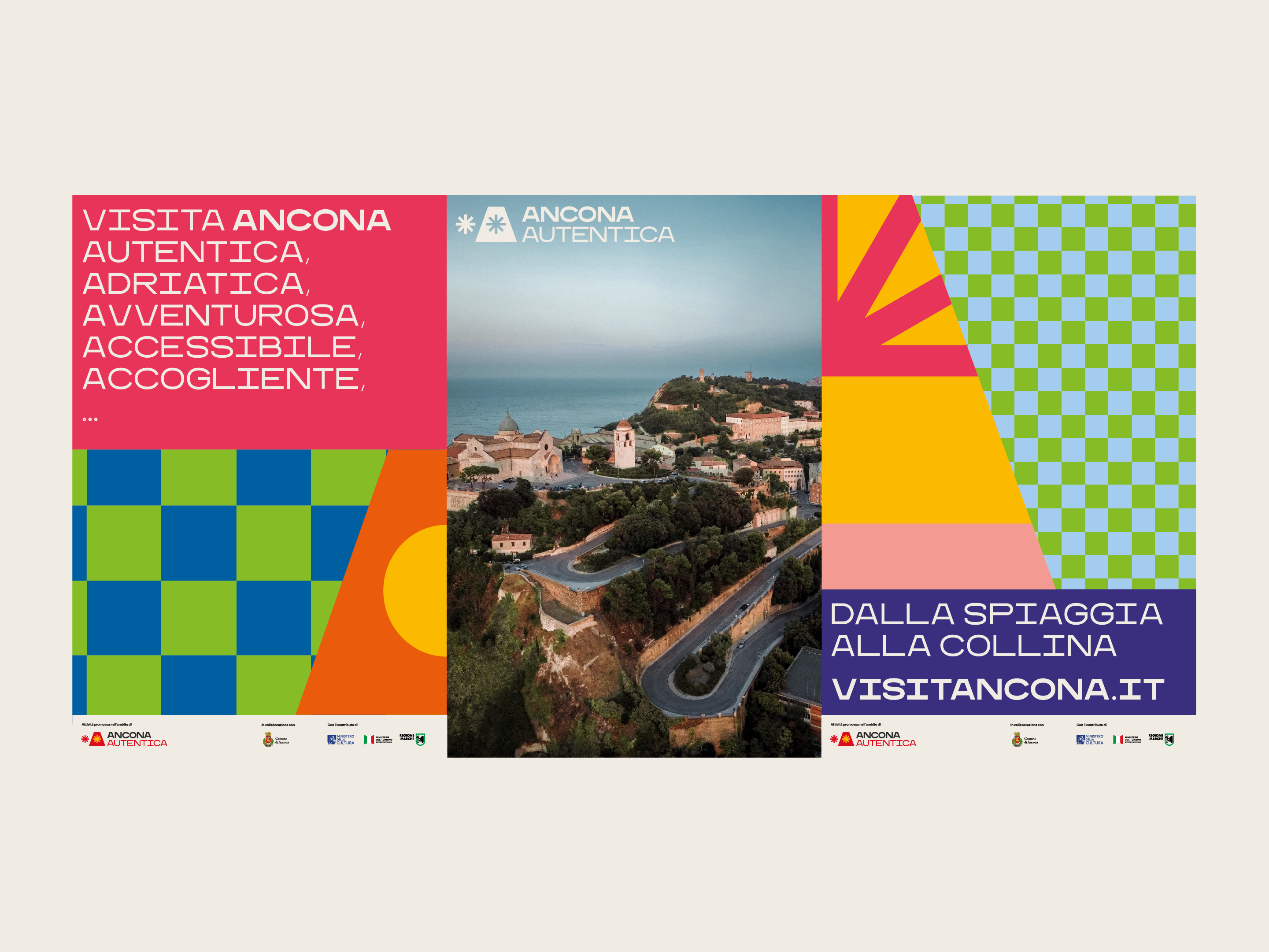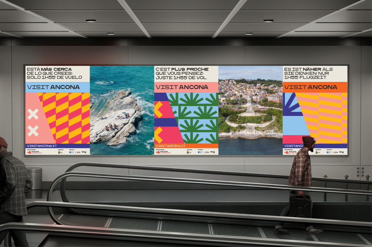 Ancona is a city of dualities: two seas, two lighthouses, two arches facing the water. It is also the city of two suns, represented by a double asterisk — two points of light that give character to the A. This idea of duality doubles the A in the payoff: Ancona is Aperta, Accogliente, Accessibile (open, welcoming, accessible), above all, Ancona is Autentica (authentic).