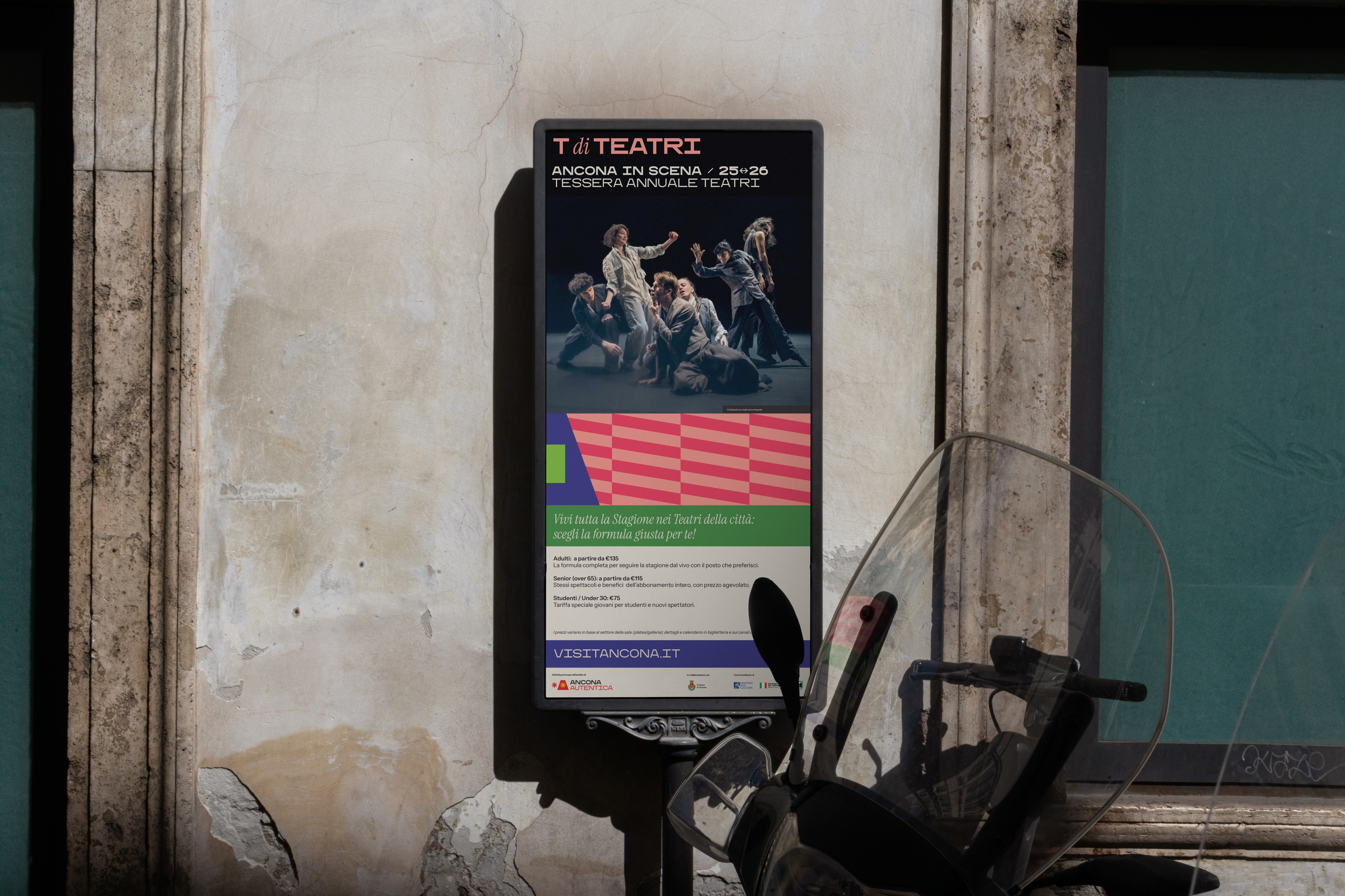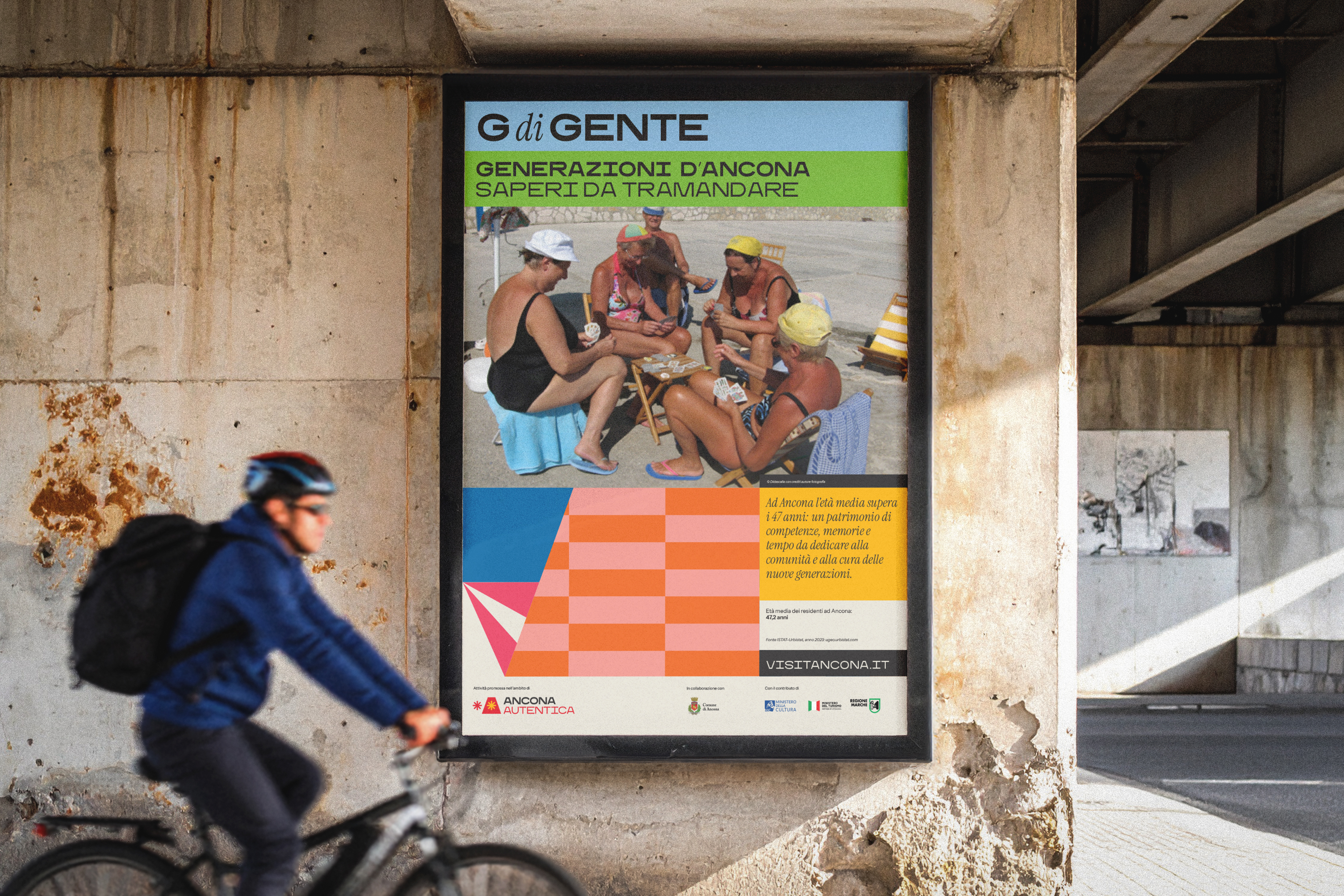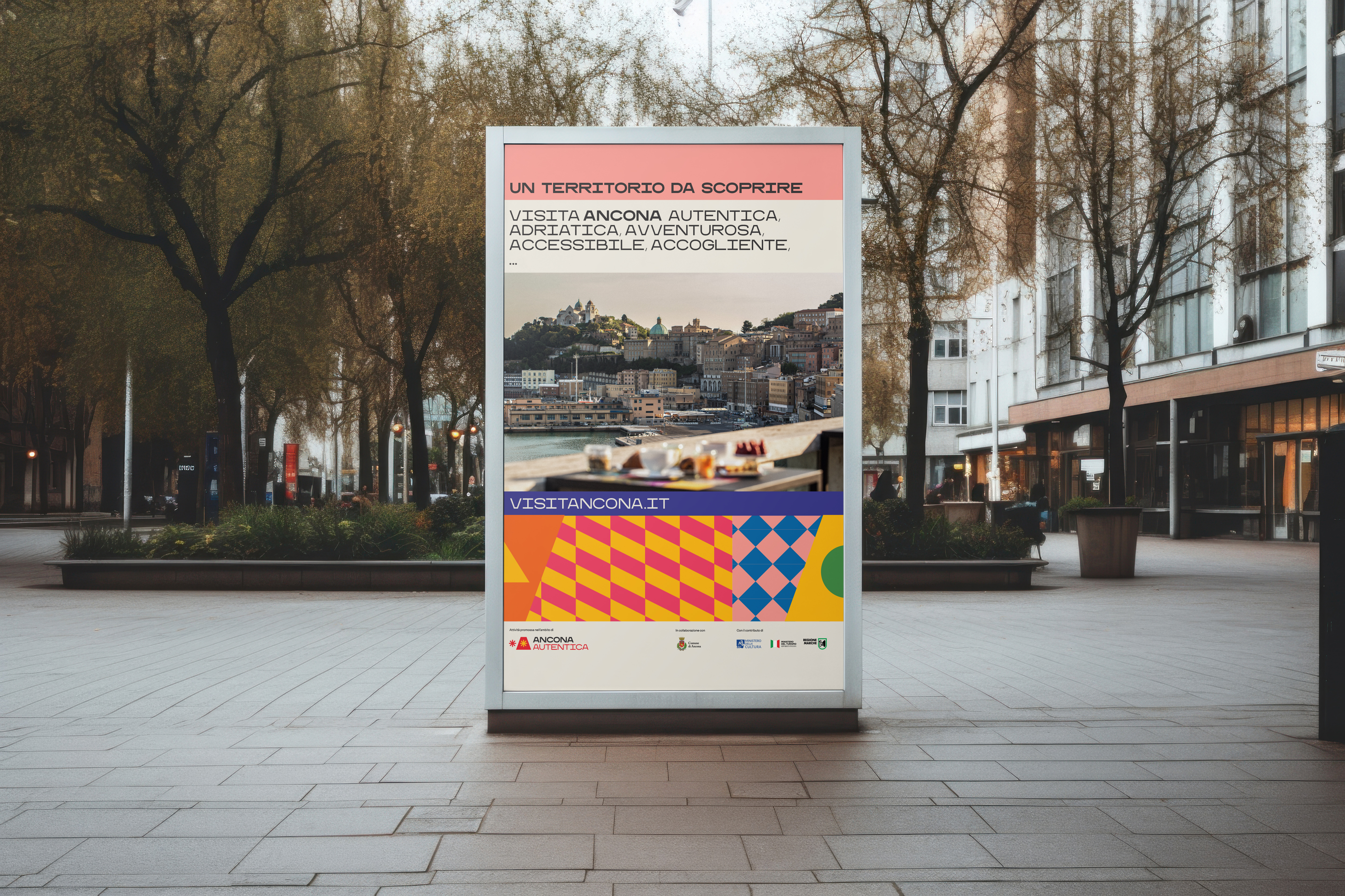 The 120 doors of the Passetto inspire a system of shapes, textures and colors. The city becomes pattern and surface — a living framework for new stories. Everything begins with the A and expands into an alphabet of words, places, events and shared values. The language is simple and direct, reflecting the way people in Ancona speak.