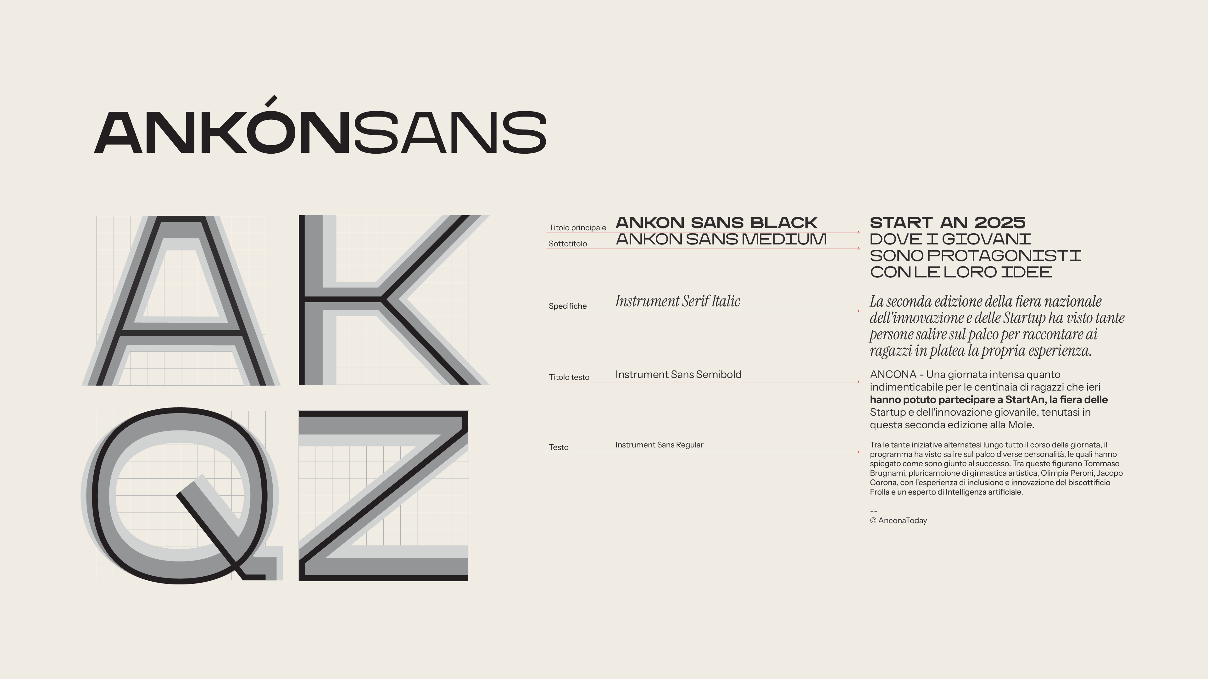A shape rooted in the territory, expressing a city in motion and in dialogue with the world. A di Ancona is also A di Ankon, the custom typeface designed to represent the city.