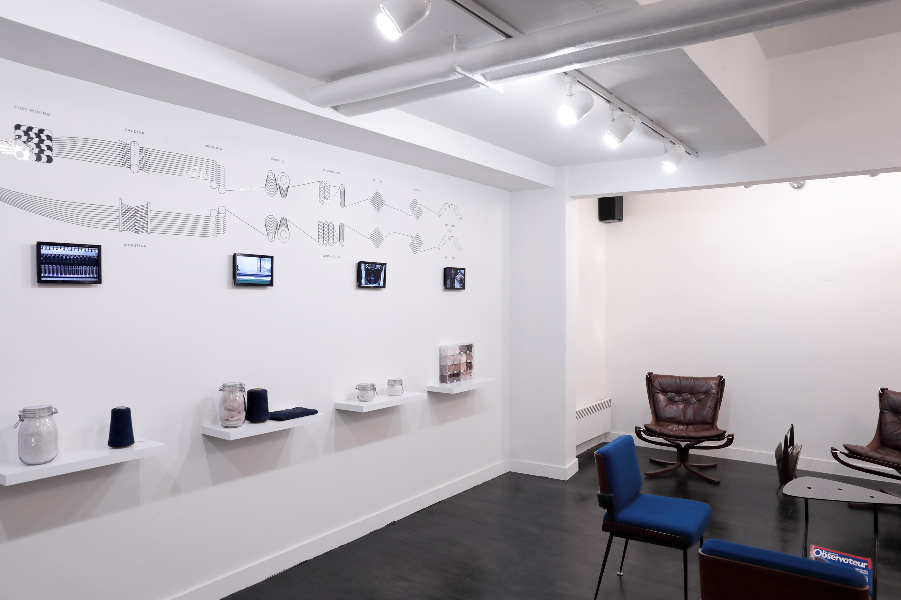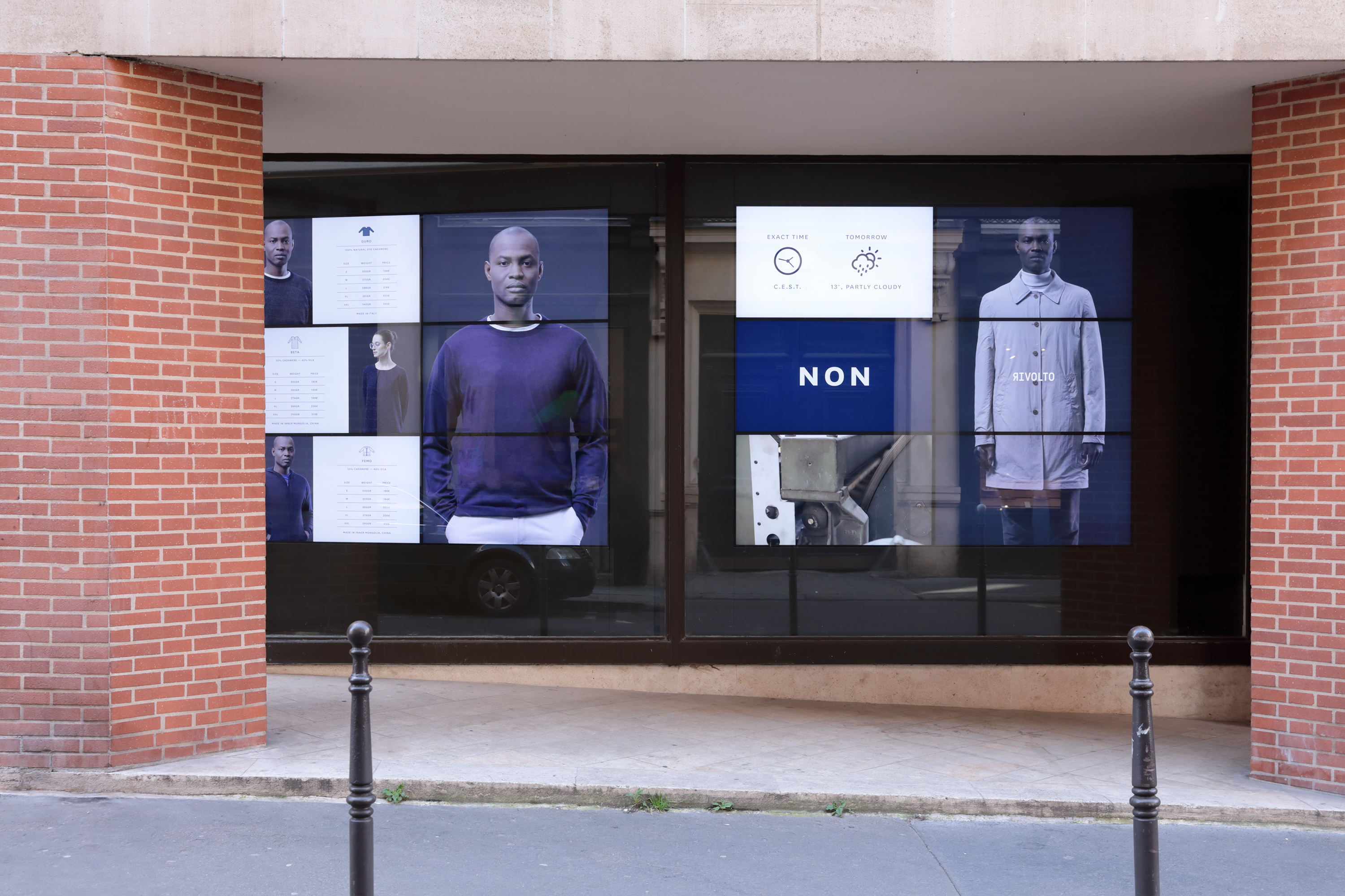 NON Paris’ store display alternates animated graphics and products’ portraits to clips introducing the chashmere’s production documentary.