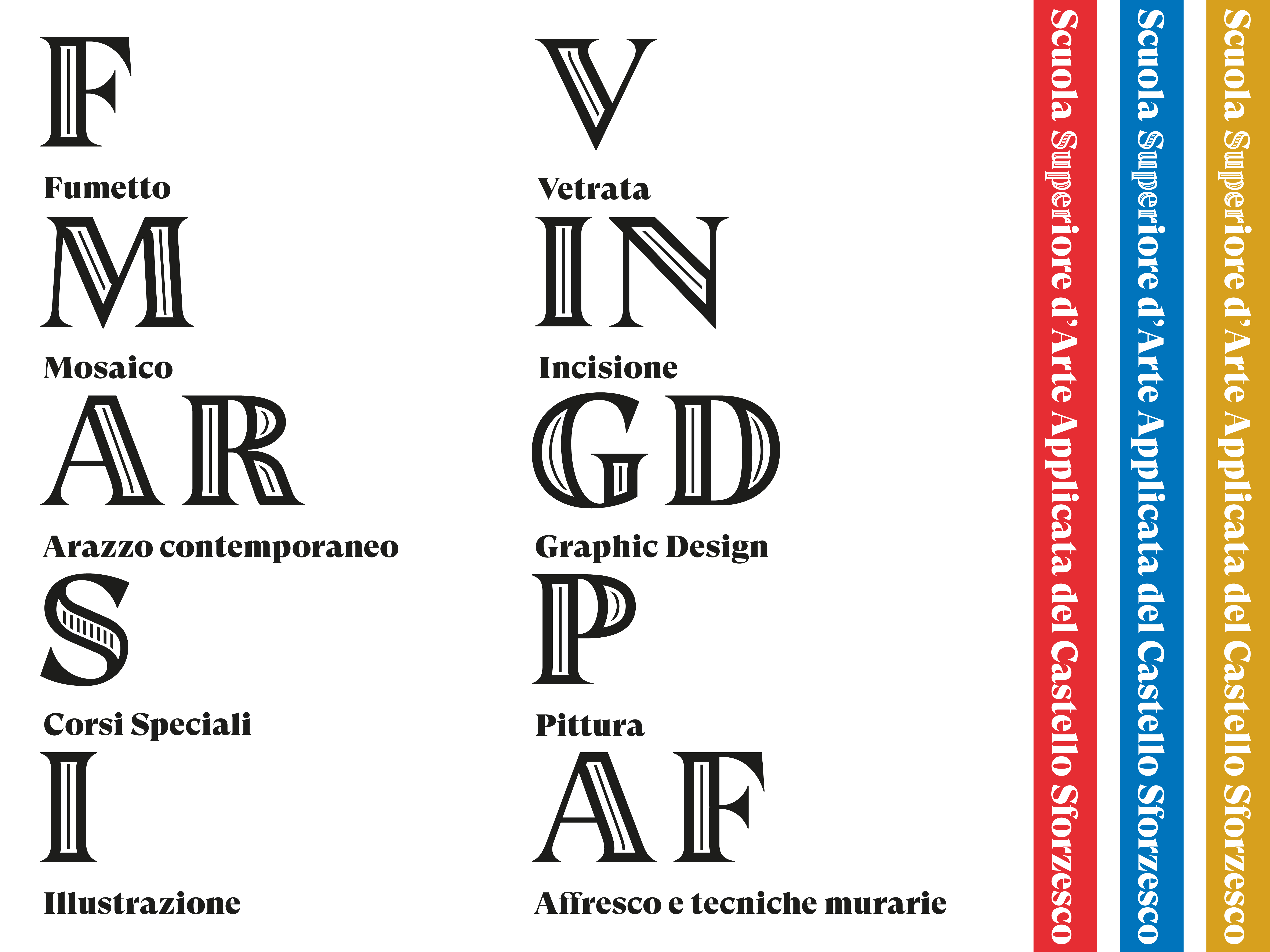 The Scuola Superiore di Arte Applicata del Castello Sforzesco is the most ancient school in town dedicated to the education in the applied arts field. Working with an internal team of professors, illustrators and comic artists we developed a new identity to shift the institution in the contemporary times, renaming the iconic Scuola del Castello in “Super”, a new platform for creative professionals.